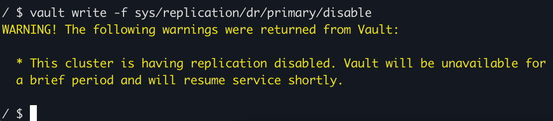 vault write -f sys/replication/dr/primary/disable