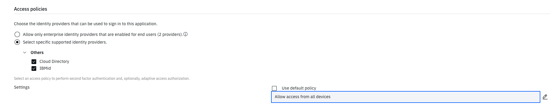Configure Access Policies : Select specific supported identity providers