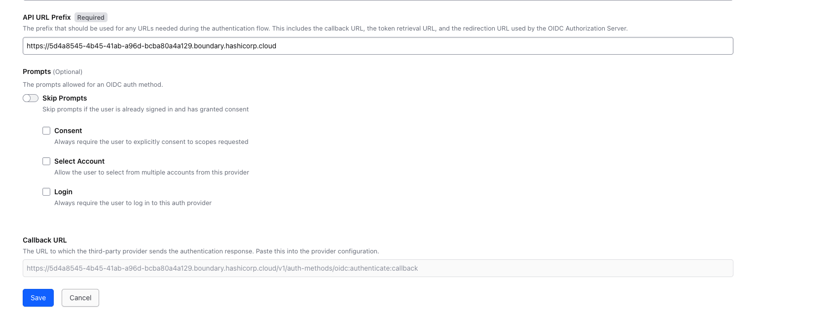 Copy the Callback URL generated by Boundary. Ensure the same Callback URL is configured in IBM Security Verify under Redirect URI.