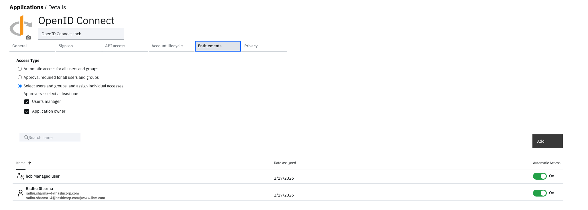 Users must be assigned here; otherwise, authentication will fail even if they only exist in the IBM verify directory.